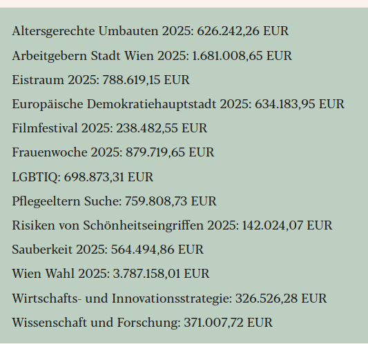 Besonders auffällig sind die hohen Ausgaben für LGBTQ- und Schönheitseingriff-Kampagnen, während die Wiener Bevölkerung mit steigenden Gebühren belastet wird.